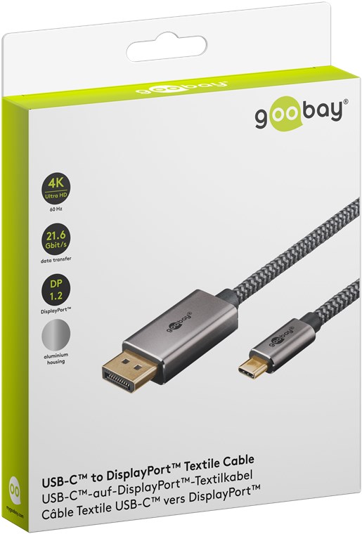 Weiterführende Links zu "Goobay 75707 USB-C™-auf-DisplayPort™-Kabel, 1 m, schwarz;silber VPE Retail Box Mindestbestellmenge 1"