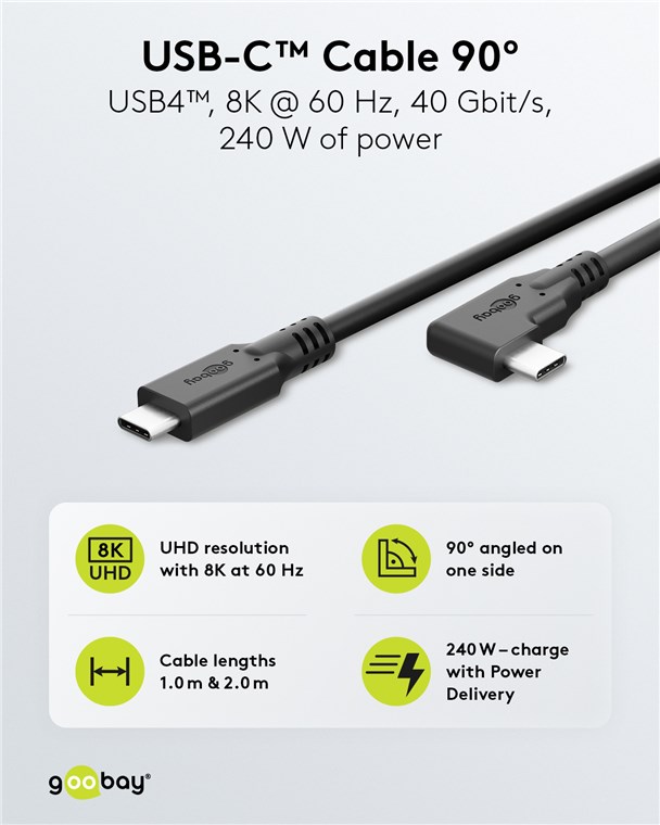 Weiterführende Links zu "Goobay 79433 USB-C™-Kabel 90°, USB4™, 2 m, schwarz VPE Cable Tag Mindestbestellmenge 1"
