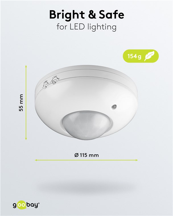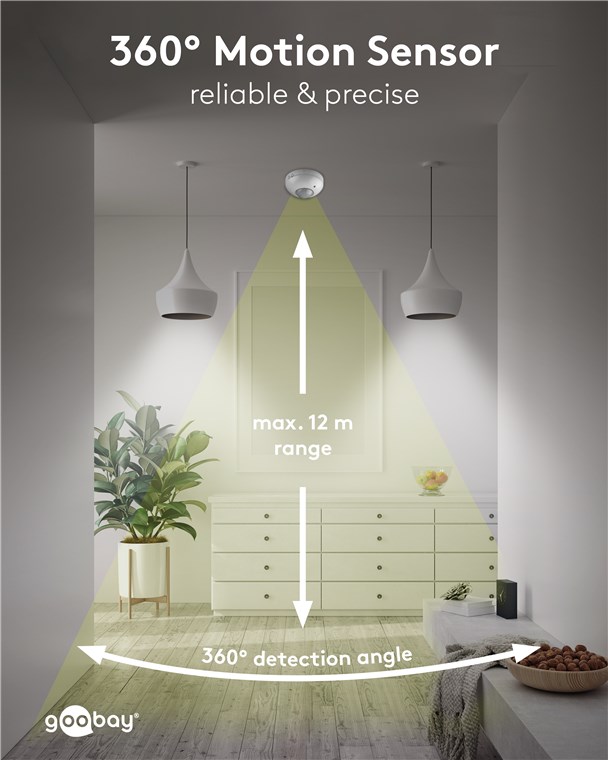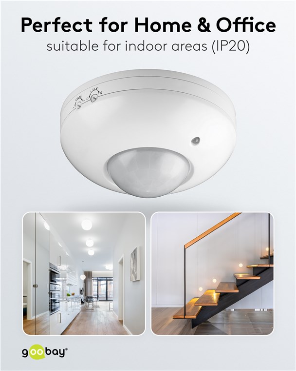 • 360°-Bewegungsmelder ist ideal für die Schaltung von Lampen und LEDs im Innenbereich geeignet.