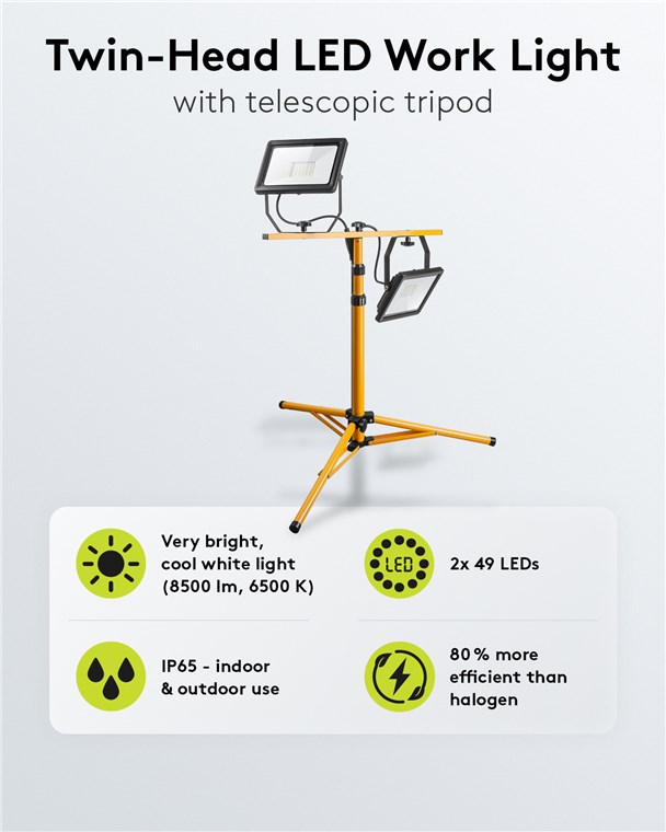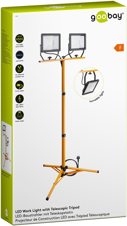 Weiterführende Links zu "Goobay 49984 LED-Baustrahler mit Teleskopstativ, 2x 50 W VPE Retail Box Mindestbestellmenge 1"