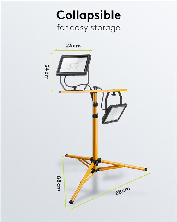 • Baulampe mit stabilem, höhenverstellbarem Metall-Stativ (87-163 cm), für die einfache Lagerung zusammenklappbar