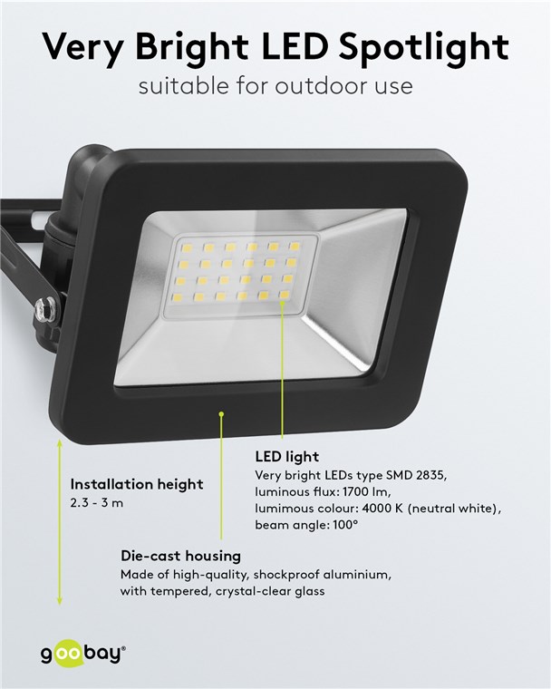Produktinformationen "Goobay 53870 LED-Außenstrahler, 20 W VPE Retail Box Mindestbestellmenge 1"