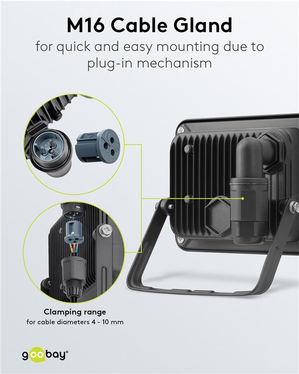 • Schnelle und einfache Montage dank praktischer M16-Kabelverschraubung mit Steckfunktion für Klemmbereich, Kabeldurchmesser 4-10 mm