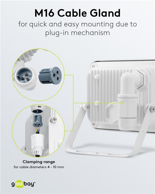 • Schnelle und einfache Montage dank praktischer M16-Kabelverschraubung mit Steckfunktion für Klemmbereich, Kabeldurchmesser 4-10 mm
