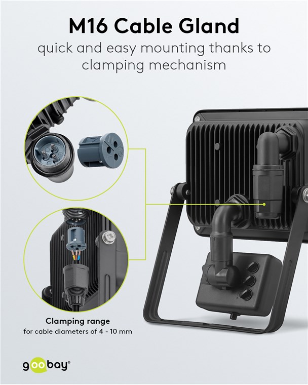• Schnelle und einfache Montage dank praktischer M16-Kabelverschraubung mit Steckfunktion für Klemmbereich, Kabeldurchmesser 4-10 mm