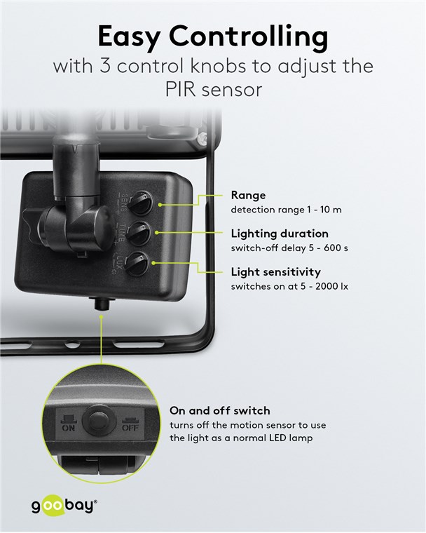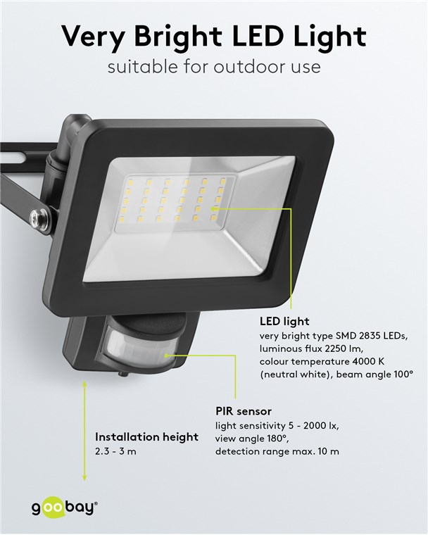 Weiterführende Links zu "Goobay 53881 LED-Außenstrahler, 30 W, mit Bewegungsmelder VPE Retail Box Mindestbestellmenge 1"