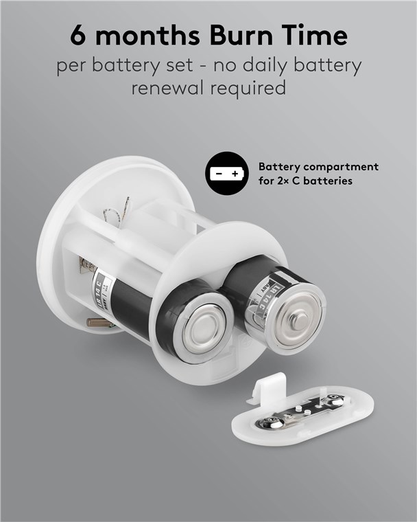 • Anders als echte Kerzen erfordert die elektrische Grabkerze kein tägliches Erneuern des Lichts, sondern leuchtet ca. 6 Monate pro Batteriesatz