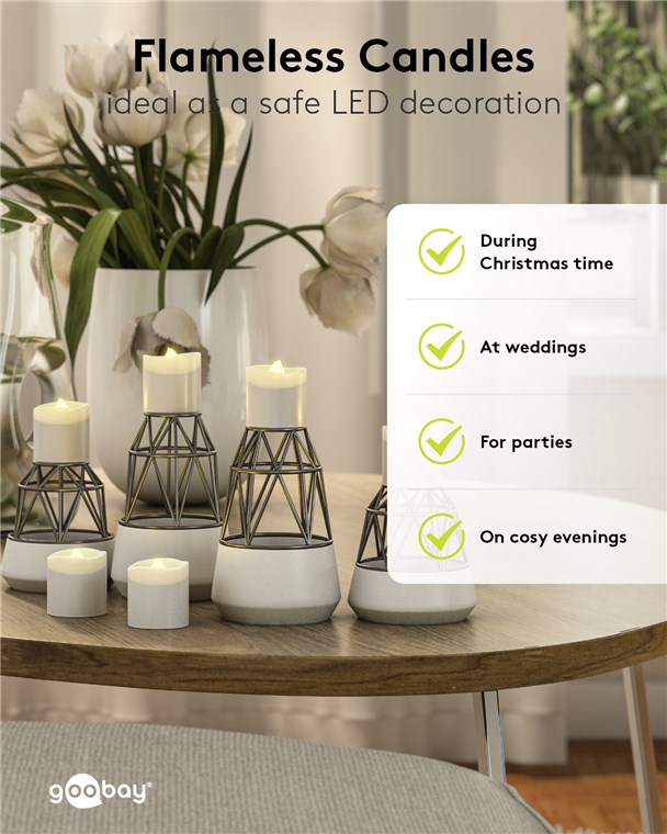 Weiterführende Links zu "Goobay 64603 6er-Set LED-Teelichter VPE Retail Box Mindestbestellmenge 1"