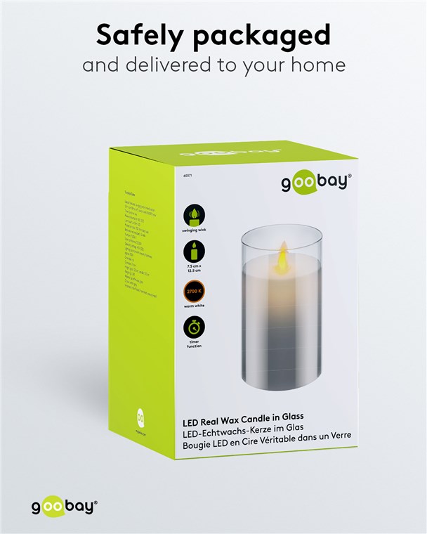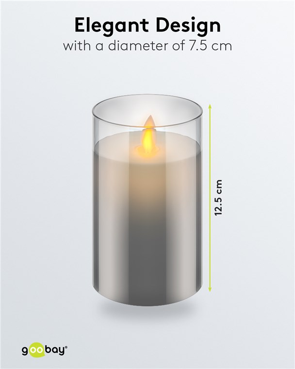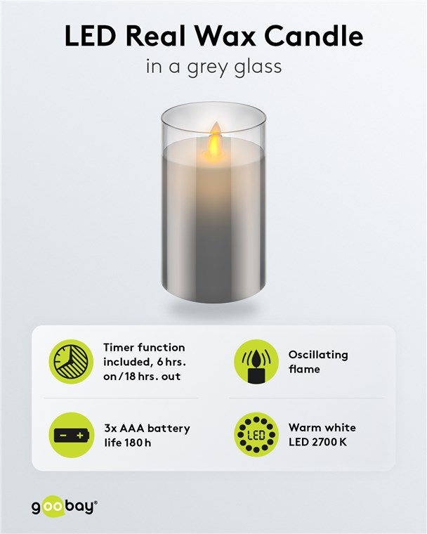 Weiterführende Links zu "Goobay 60371 LED-Echtwachskerze im Glas, 7,5 x 12,5 cm, grau-transparent VPE Retail Box Mindestbestellmenge 1"