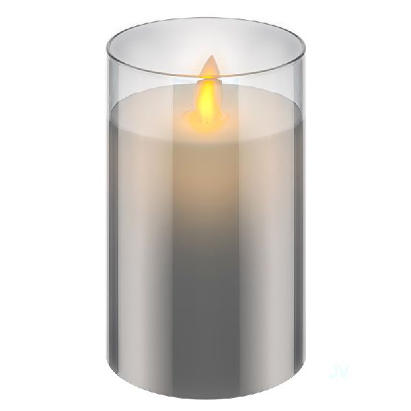 Produktinformationen "Goobay 60371 LED-Echtwachskerze im Glas, 7,5 x 12,5 cm, grau-transparent VPE Retail Box Mindestbestellmenge 1"