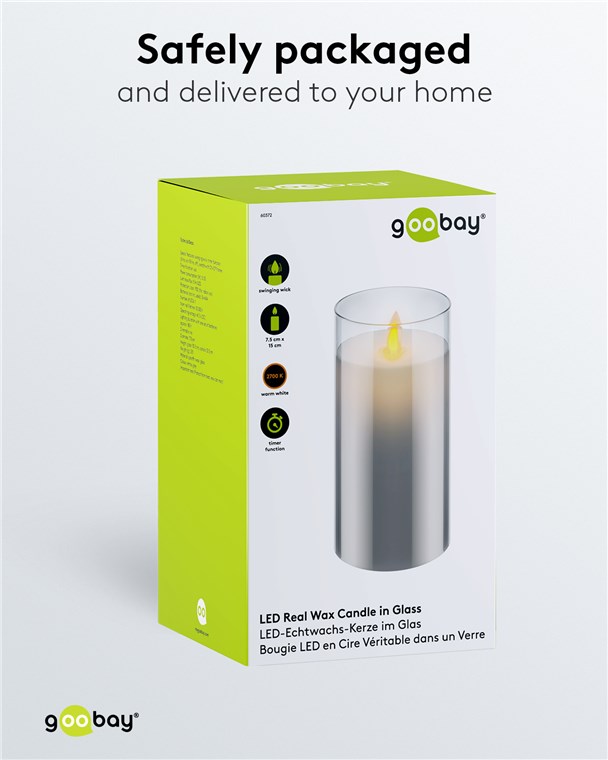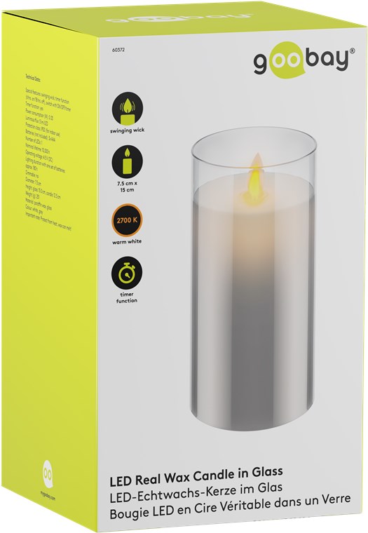 Produktinformationen "Goobay 60372 LED-Echtwachskerze im Glas, 7,5 x 15 cm VPE Retail Box Mindestbestellmenge 1"