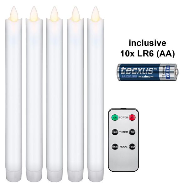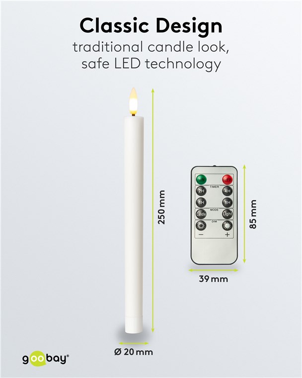 Weiterführende Links zu "Goobay 75268 5er-Set weiße LED-Echtwachs-Stabkerzen, inkl. Fernbedienung und 10x AAA (LR03) VPE Retail Polybag Mindestbestellmenge 1"