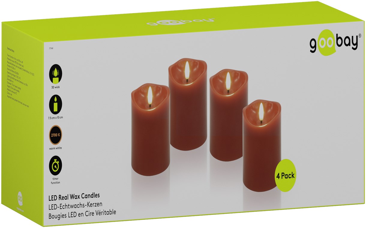 Weiterführende Links zu "Goobay 77749 4er-Set LED-Echtwachskerzen, rot VPE Retail Box Mindestbestellmenge 1"