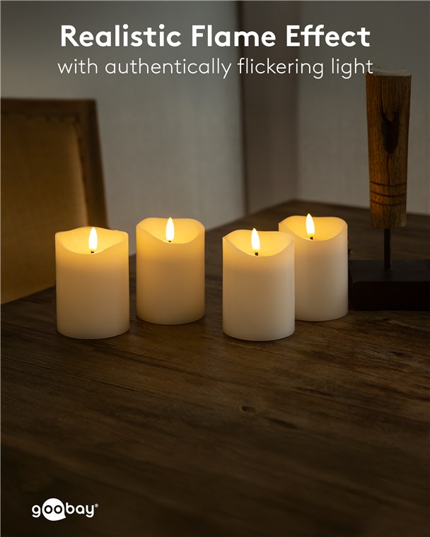 Weiterführende Links zu "Goobay 77780 4er-Set LED-Echtwachskerzen, weiß VPE Retail Box Mindestbestellmenge 1"