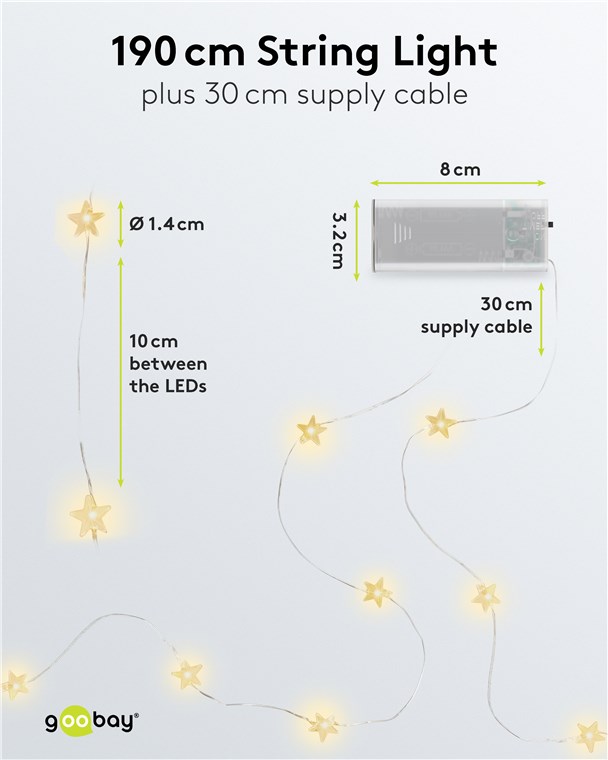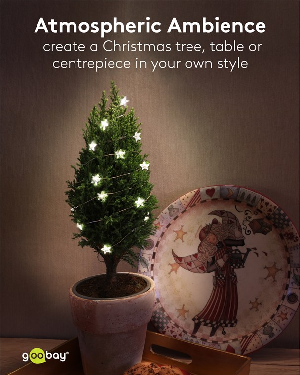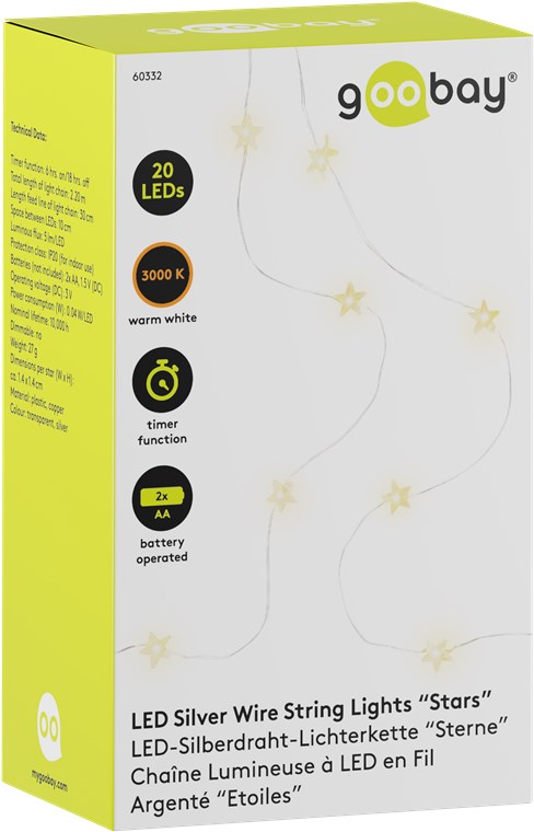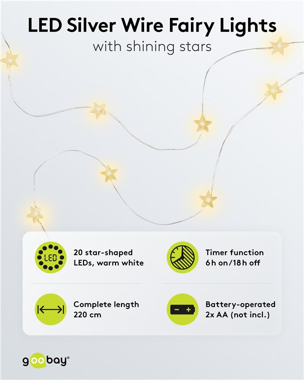 Weiterführende Links zu "Goobay 60332 20er LED-Silberdraht-Lichterkette "Sterne" VPE Retail Box Mindestbestellmenge 1"