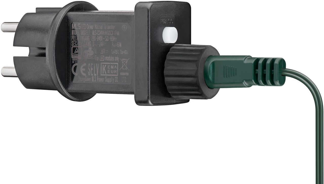 • Adapterstecker mit 8 Modi (Kombination, in Wellen, sequenziell, langsam glimmend, schneller Wechsel, langsames Dimmen, Funkeln, Dauerleuchten), Timer 6 Std. an/18 Std. aus, Memory-Funktion