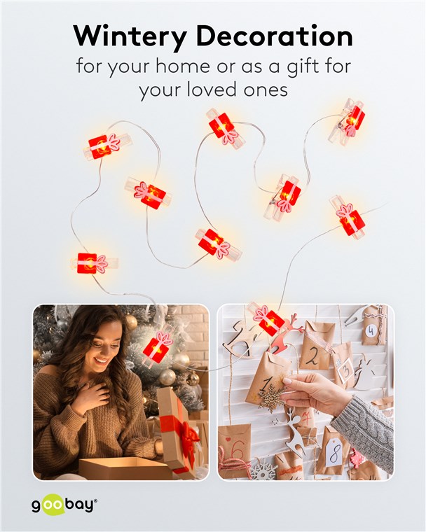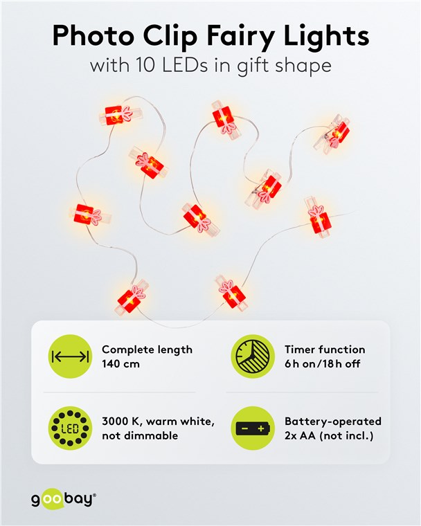 Produktinformationen "Goobay 60249 10er LED-Fotoclips-Lichterkette "Geschenk" VPE Retail Box Mindestbestellmenge 1"