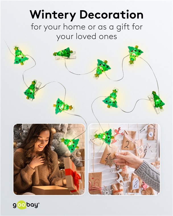 Weiterführende Links zu "Goobay 60254 10er LED-Fotoclips-Lichterkette "Tannenbaum" VPE Retail Box Mindestbestellmenge 1"