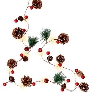 • Anhänger: große echte Tannenzapfen 4 x 5 cm, kleine echte Tannenzapfen 2,5 x 2 cm, rote Beeren Ø 1,4 cm, rote Glöckchen Ø 1,8 cm, Tannenzweige 5 x 5 cm
