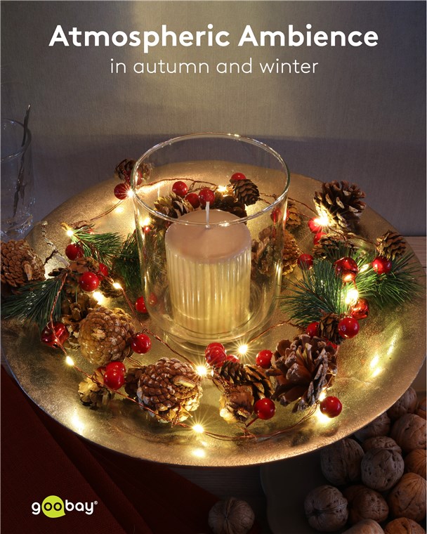 Produktinformationen "Goobay 60274 20er LED-Silberdraht-Lichterkette "Tannenzapfen & rote Beeren" VPE Retail Box Mindestbestellmenge 1"