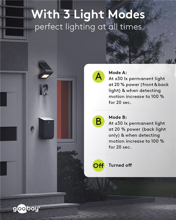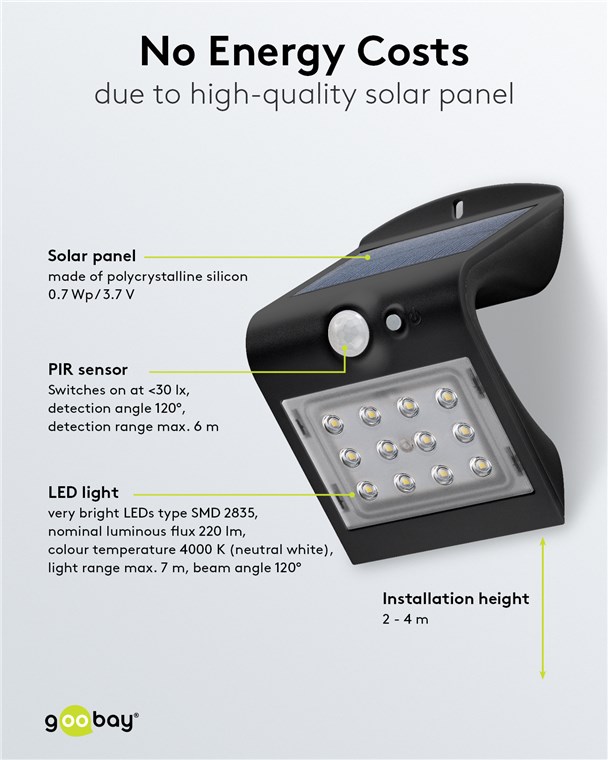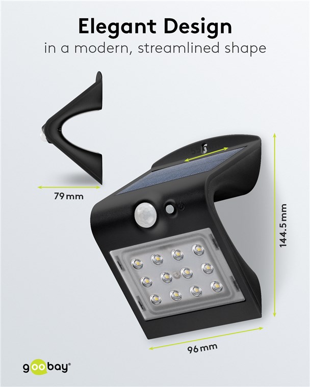 Weiterführende Links zu "Goobay 45801 LED-Solar-Wandleuchte mit Bewegungsmelder, 1,5 W, schwarz VPE Retail Box Mindestbestellmenge 1"