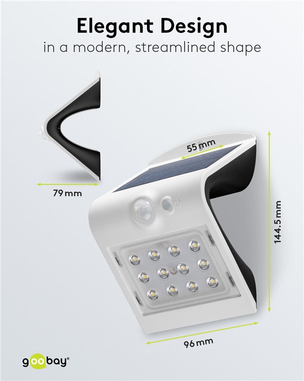Weiterführende Links zu "Goobay 45802 LED-Solar-Wandleuchte mit Bewegungsmelder, 1,5 W, weiß VPE Retail Box Mindestbestellmenge 1"