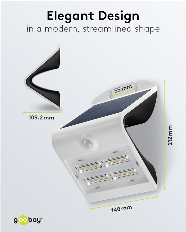 Weiterführende Links zu "Goobay 45808 LED-Solar-Wandleuchte mit Bewegungsmelder, 3,2 W, weiß VPE Retail Box Mindestbestellmenge 1"