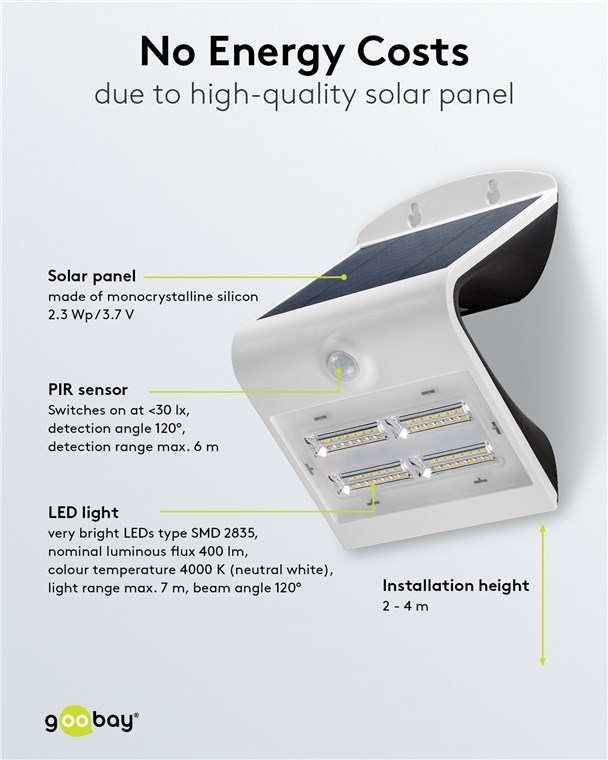 Goobay 77441 LED-Solar-Wandleuchte mit Bewegungsmelder, 4 W, weiß VPE Retail Box Mindestbestellmenge 1
