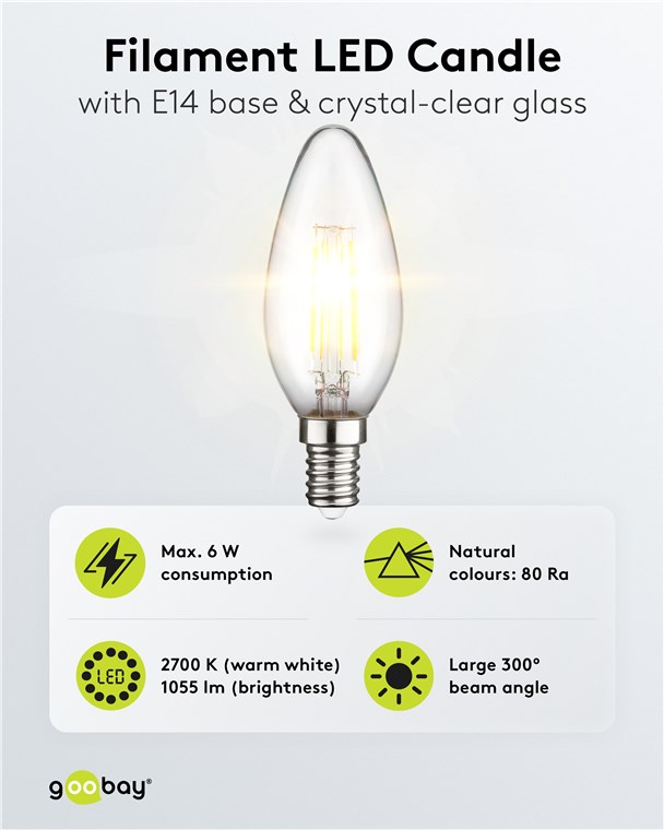 Weiterführende Links zu "Goobay 65393 Filament-LED-Kerze, 6 W VPE Retail Box Mindestbestellmenge 1"