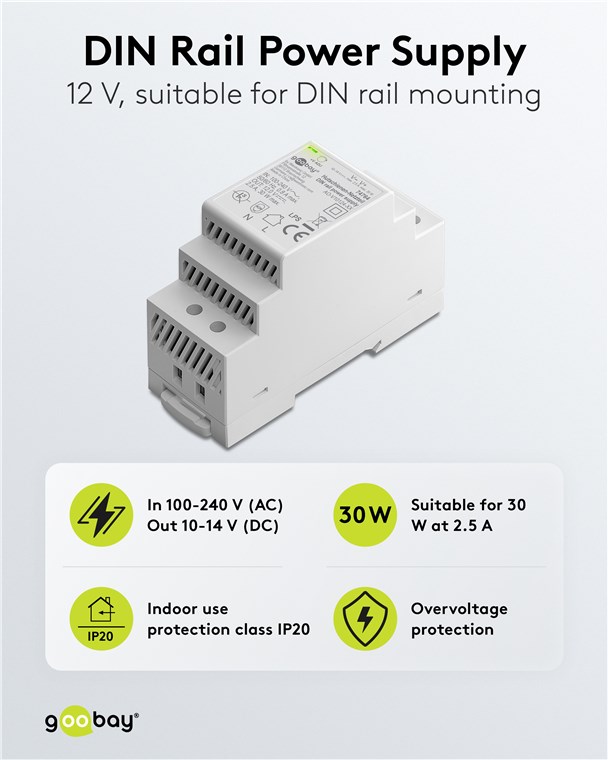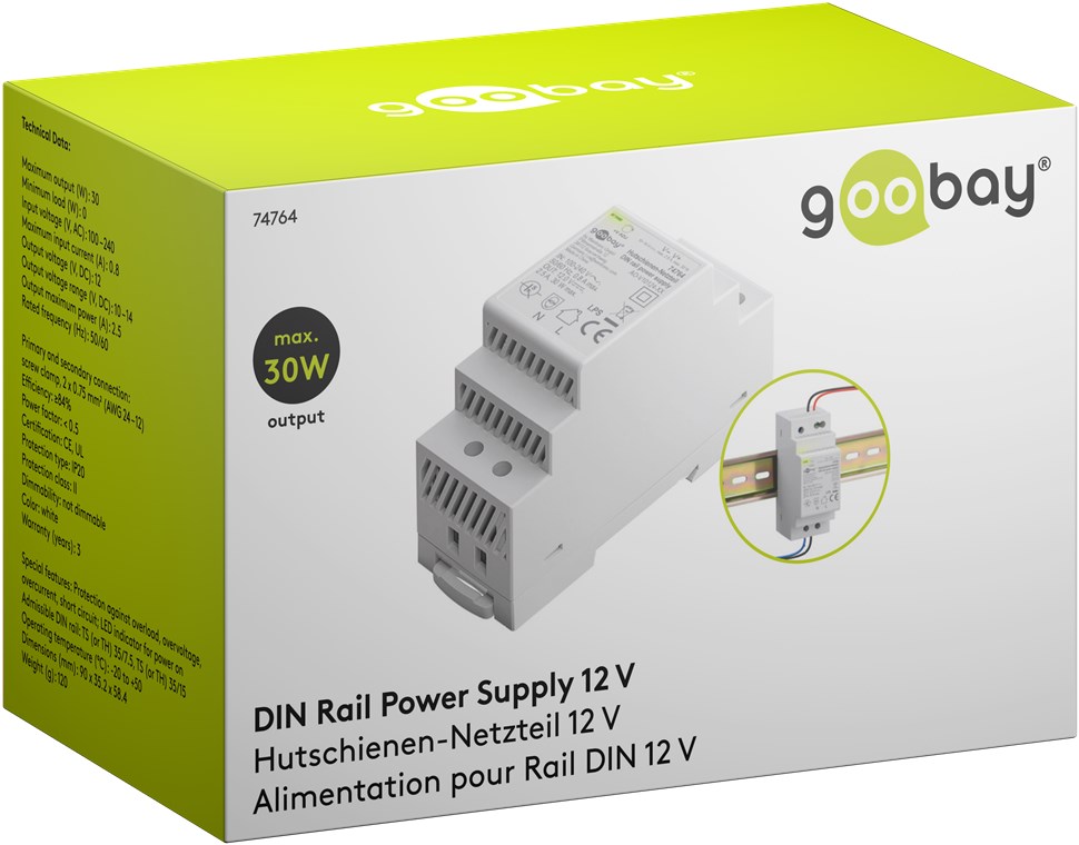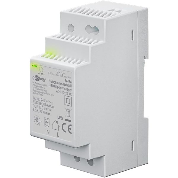 Produktinformationen "Goobay 74764 Hutschienen-Netzteil (DIN-Rail) 12 V (DC), 2,5 A, 30 W VPE Retail Box Mindestbestellmenge 1"