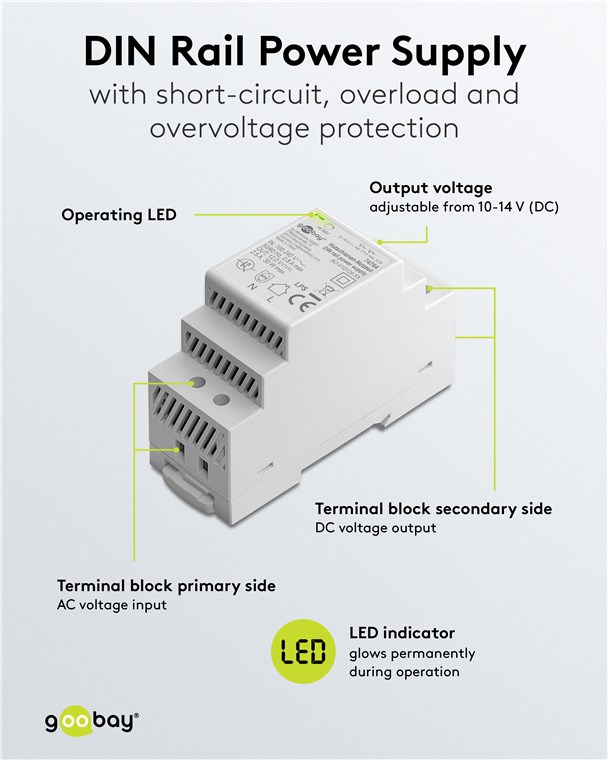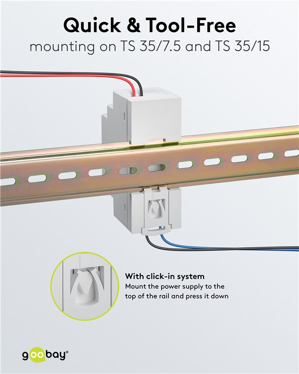 Weiterführende Links zu "Goobay 74764 Hutschienen-Netzteil (DIN-Rail) 12 V (DC), 2,5 A, 30 W VPE Retail Box Mindestbestellmenge 1"
