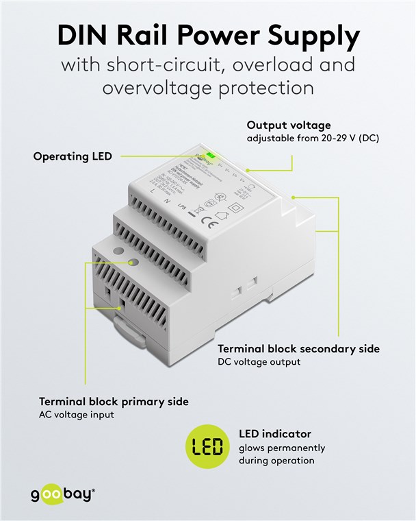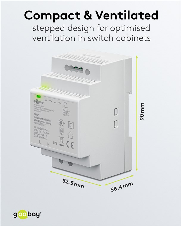 Weiterführende Links zu "Goobay 74767 Hutschienen-Netzteil (DIN-Rail) 24 V (DC), 2,5 A, 60 W VPE Retail Box Mindestbestellmenge 1"