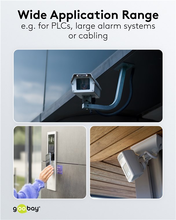 • Das 24-V-Netzteil eignet sich für leistungsstarke Systeme, die mehrere Geräte versorgen, z. B. in der Industrieautomation oder komplexe Beleuchtungs-, Überwachungs- und Alarmsysteme