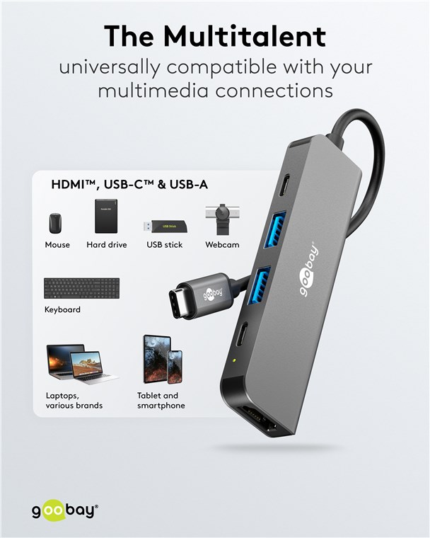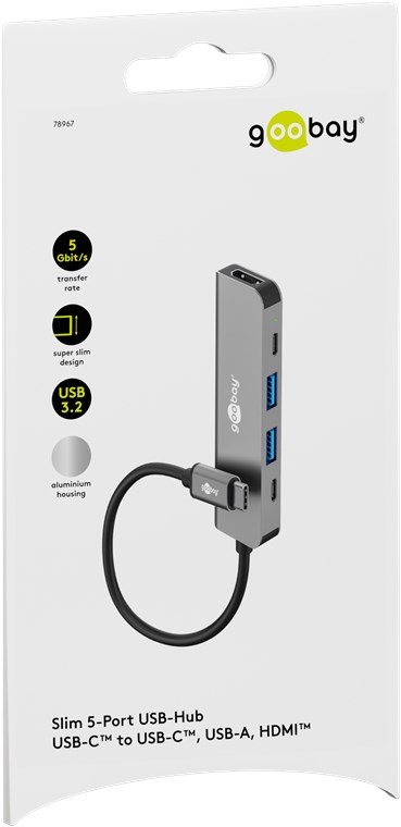 Weiterführende Links zu "Goobay 78967 Slim 5-Port USB-Hub mit HDMI™, 5 Gbit/s VPE Retail Box Mindestbestellmenge 1"