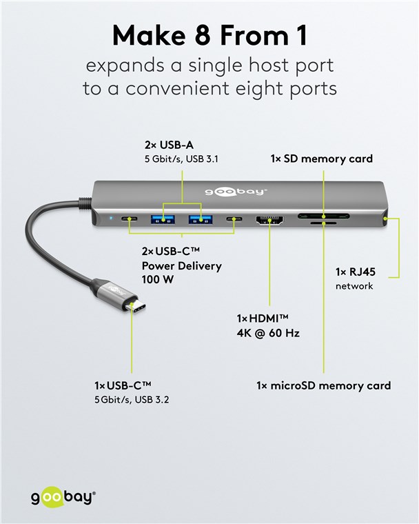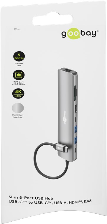 Weiterführende Links zu "Goobay 79146 Slim 8-Port USB-Hub mit HDMI™ und RJ45, 5 Gbit/s VPE Retail Box Mindestbestellmenge 1"