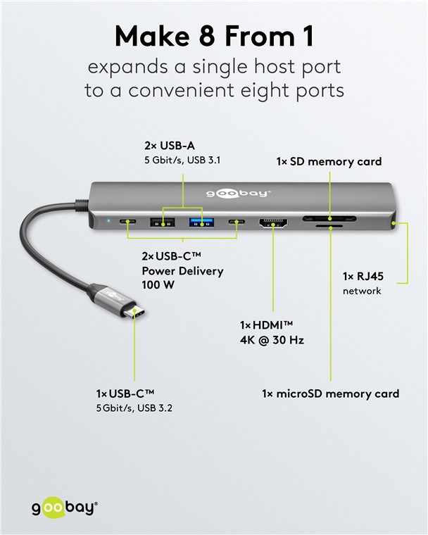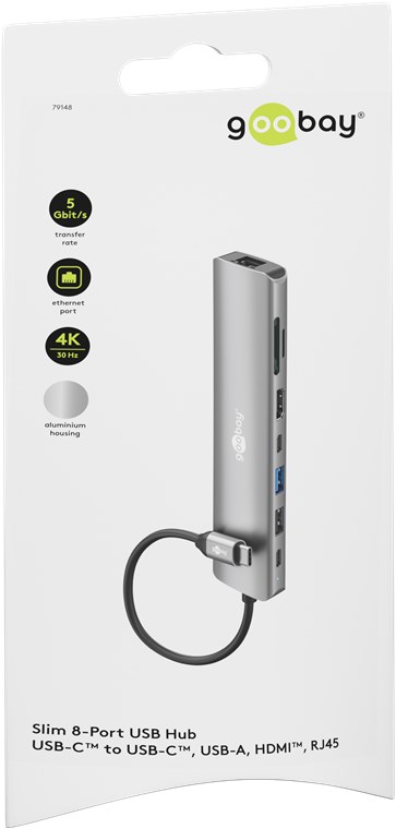 Weiterführende Links zu "Goobay 79148 Slim 8-Port USB-Hub mit HDMI™ und RJ45, 5 Gbit/s VPE Retail Box Mindestbestellmenge 1"