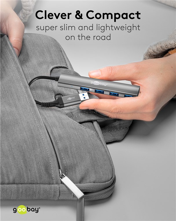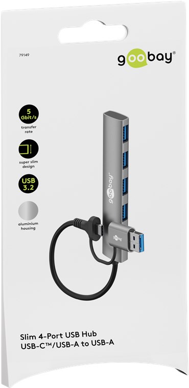 Weiterführende Links zu "Goobay 79149 2in1 Slim 4-Port USB-Hub, 5 Gbit/s VPE Retail Box Mindestbestellmenge 1"