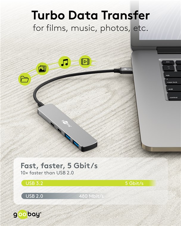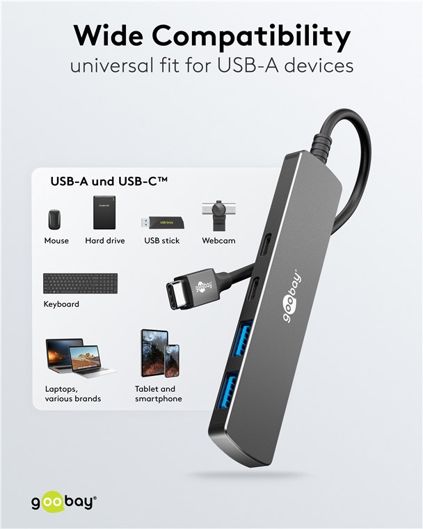 Weiterführende Links zu "Goobay 79159 Slim 4-Port USB-Hub, USB-C™ auf USB-C™/USB-A, 5 Gbit/s VPE Retail Box Mindestbestellmenge 1"