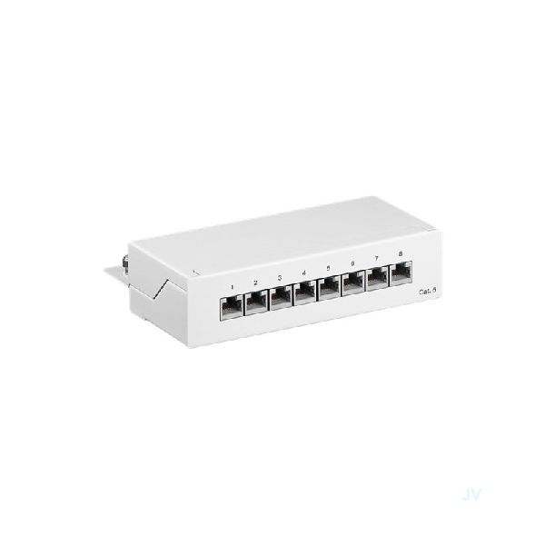 CAT 6 Mini/Desktop Patch Panel, 8 Port, (1 HE) Farbversion: Weiß