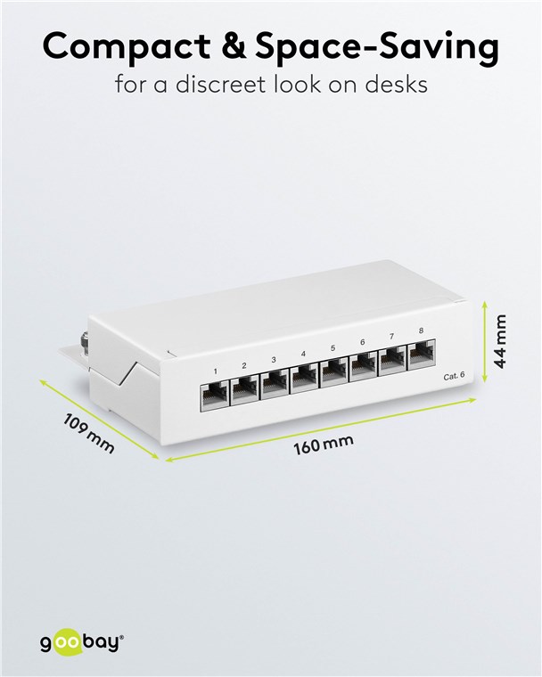 Produktinformationen "Goobay 62069 CAT 6 Mini/Desktop Patch Panel, 8 Port, (1 HE) VPE Brown Box with Label Mindestbestellmenge 1"