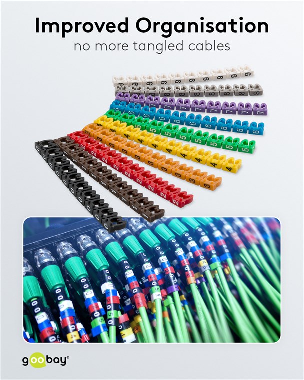 Goobay-Kabelringe aus PVC sind die perfekte Markierungslösung für Verkabelungen in Branchen wie Industrie, Bauwesen und Handwerk. Kabelclips vermeiden Anwendungsfehler und erhöhen die Sicherheit bei Wartung, Installation und Reparatur. So werden Verwechslungen und Unfallgefahren erheblich reduziert.