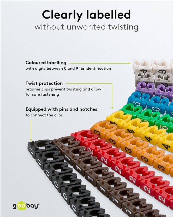 Produktinformationen "Goobay 72514 Kabelmarker-Clips "Ziffern 0-9", für Kabeldurchmesser von 3,8 - 5,9 mm VPE Retail Polybag Mindestbestellmenge 1"
