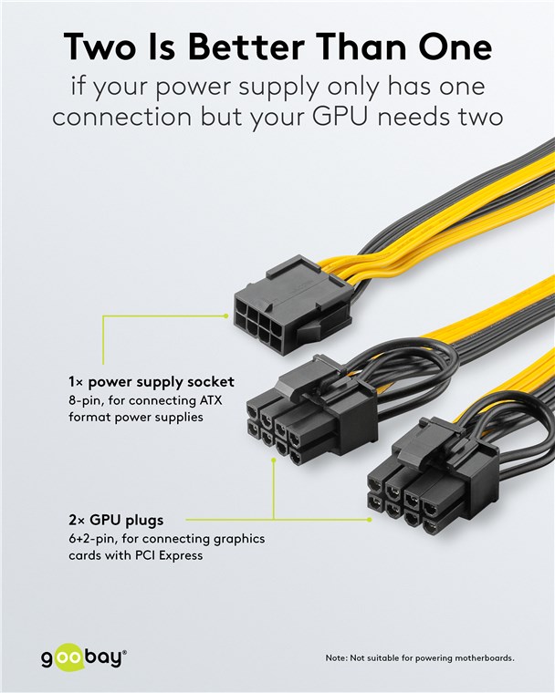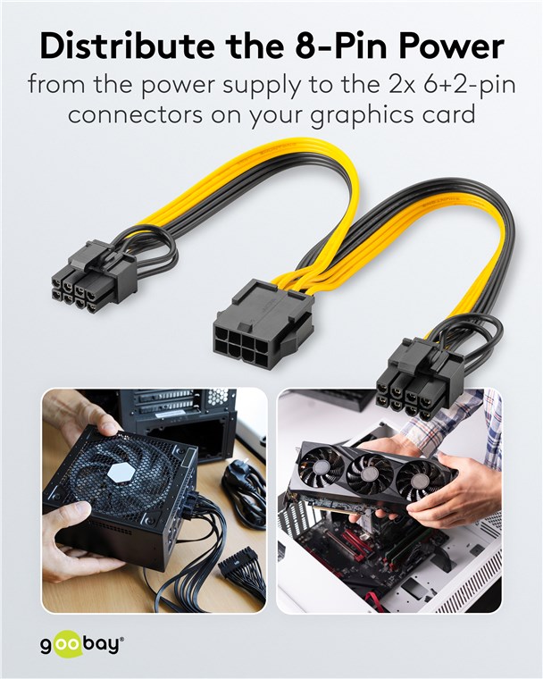 Weiterführende Links zu "Goobay 60000 Netzteil-Kabel 8-Pin-Buchse auf Dual 6+2-Stecker für PCIe VPE Bulk Mindestbestellmenge 1"