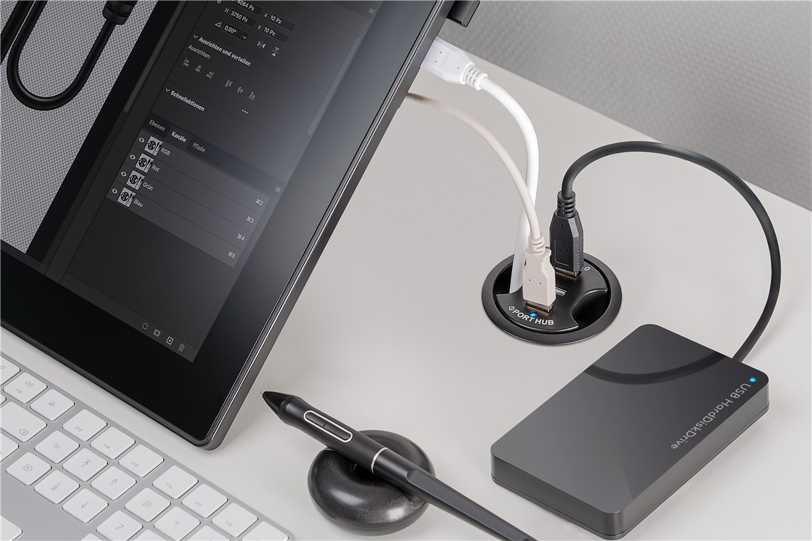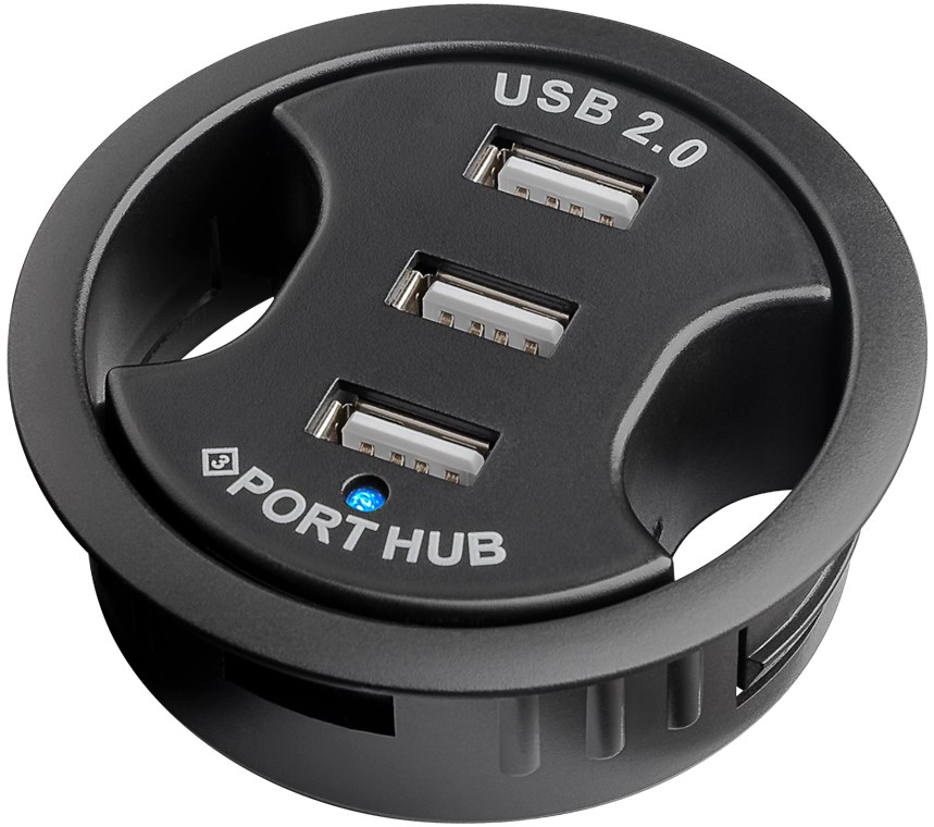3-fach USB 2.0 Hi-Speed Einbau-HUB/Verteiler : zum Einbau in 60 mm Tischdurchführungen •... mehr