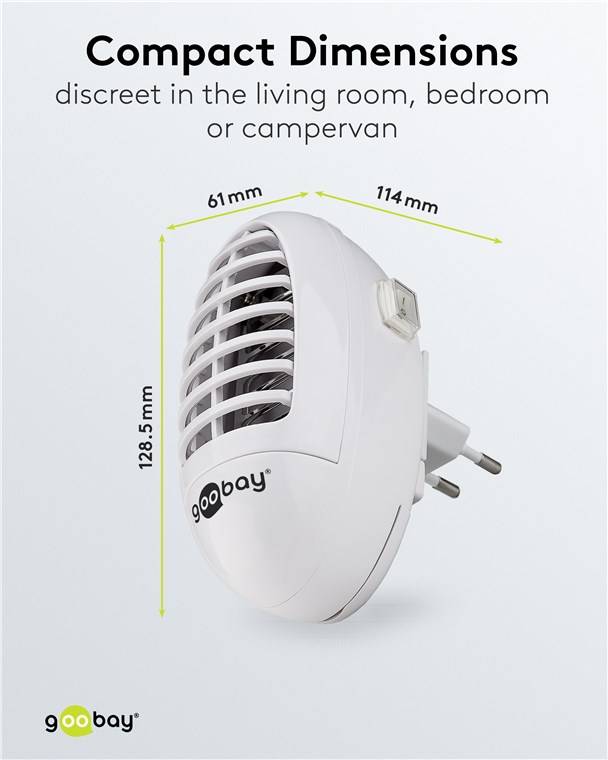 Der flüsterleise Fliegenfänger: Die UV-Insektenfalle befreit Ihr Zuhause einfach und effektiv von Moskitos, Fruchtfliegen, Motten und anderen fliegenden Insekten - völlig ohne schädliche Chemikalien oder störende Geräusche. Mit seinem kompakten Format ist der Stecker die dezente Lösung im heimischen Wohnzimmer, Schlafzimmer, in der Küche oder auch unterwegs im Campervan.
