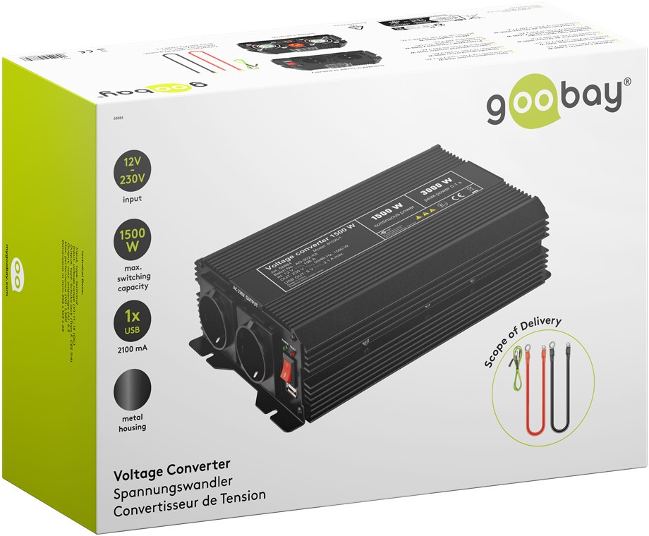 Produktinformationen "Goobay 58884 Kfz-Spannungswandler DC/AC (12 V - 230 V/1500 W) VPE Retail Box Mindestbestellmenge 1"