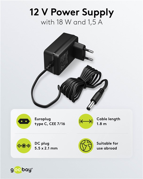 Produktinformationen "Goobay 64975 12-V-Netzteil (18 W / 1,5 A) VPE Brown Box with Label Mindestbestellmenge 1"