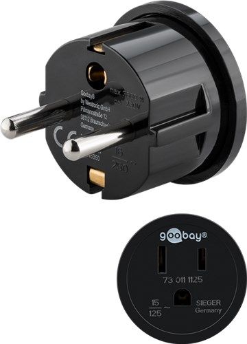 Weiterführende Links zu "Goobay 45350 Reiseadapter USA/Japan auf Europa, schwarz VPE Retail Polybag Mindestbestellmenge 1"