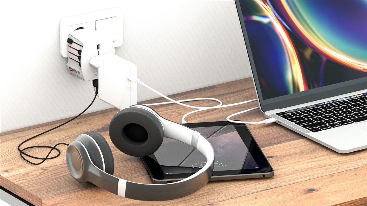 • 2x integrierte USB-Anschlüsse ermöglicht das Laden von USB-Geräten an Steckdosen weltweit.