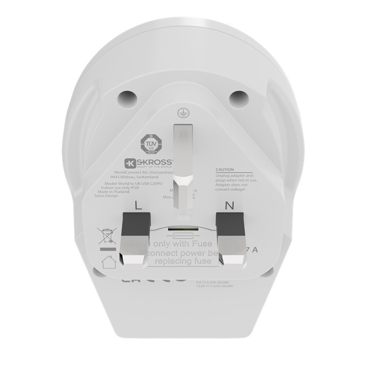 Weiterführende Links zu "Skross 64715 World Adapter - World to UK USB-C™ PD VPE Retail Box Mindestbestellmenge 1"